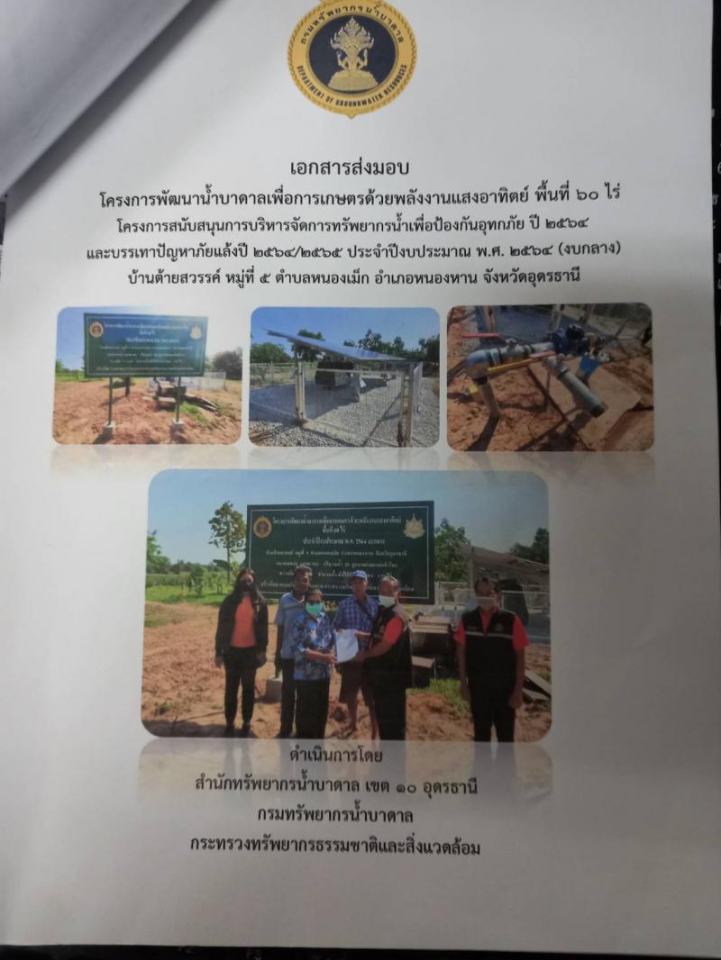 : เทศบาลตำบลโคกสูงร่วมกับสำนักงานทรัพยากร เขต ๑๐ จังหวัดอุดรธานี ให้บริการน้ำบาดาลในการใช้พลังงาแสงอาทิตย์พลังงานทดแทน
