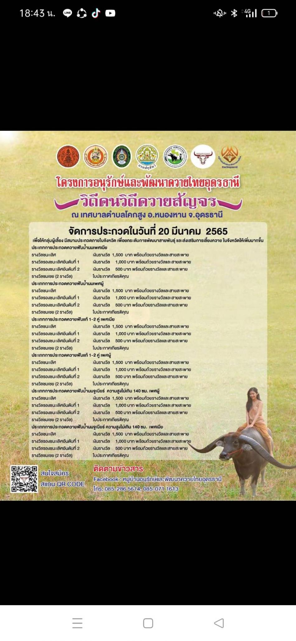 รายละเอียด : กลุ่มพัฒนาควายไทย อำเภอหนองหาน ได้กำหนดจัดงาน "วิถีคน วิถีควาย" ในระหว่างวันที่ ๑๙-๒๐ มีนาคม ๒๕๖๕ ณ บริเวณด้านหน้าอาคารสำนักงานเทศบาลตำบลโคกสูง