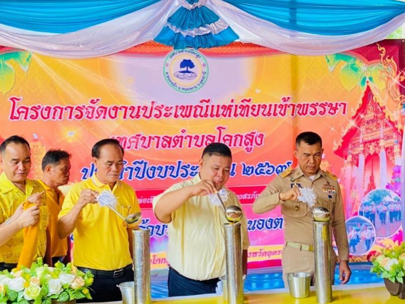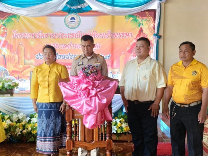 รายละเอียด : วันอังคาร ที่ ๑๖ กรกฎาคม ๒๕๖๗ เทศบาลตำบลโคกสูง จัดโครงการประเพณีหล่อเทียนพรรษา ประจำปีงบประมาณ พ.ศ. ๒๕๖๗ นำโดยร้อยตรีจักรพงษ์ วิบูลย์กุล นายกเทศมนตรีเทศบาลตำบลโคกสูง คณะผู้บริหาร สมาชิกสภา หัวหน้าส่วนราชการ พนักงานเทศบาล ร่วมกับผู้นำหมู่บ้าน ประชาชนในเขตเทศบาลตำบลโคกสูง โดยท่านสมศักดิ์ แสนอินทร์ นายอำเภอหนองหาน เป็นประธานในพิธีหล่อเทียนเข้าพรรษา ณ วัดศรีแก้วบัวบาน ซึ่งมีหน่วยงานราชการอื่นๆร่วม เช่น โรงเรียนในสังกัด สพฐ. โรงเรียนเทศบาล ๑ โคกสูง นักเรียน ผู้ปกครอง ได้เห็นประโยชน์วัฒนธรรมประเพณีท้องถิ่นอันดีงาม ได้ร่วมสืบสานประเพณีวัฒนธรรม เพื่อถวายเทียนพรรษาเป็นการบูชาแด่พระภิกษุสงฆ์ในการปฏิบัติธรรม