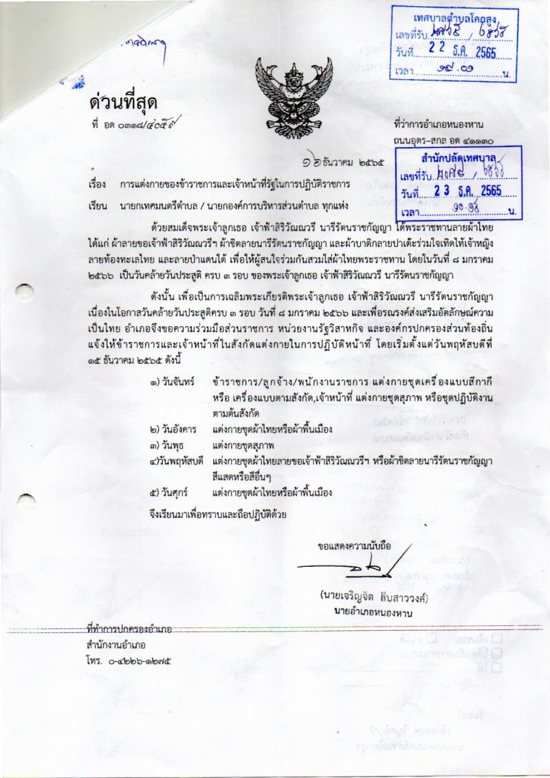 : บันทึกข้อความแจ้ง ที่ อด ๗๕๓๐๑.๑/๑๘ ลงวันที่ ๖ มกราคม ๒๕๖๖ เรื่อง การแต่งกายของข่าราชการและเจ้าหน้าที่รัฐในการปฏิบัติราชการ