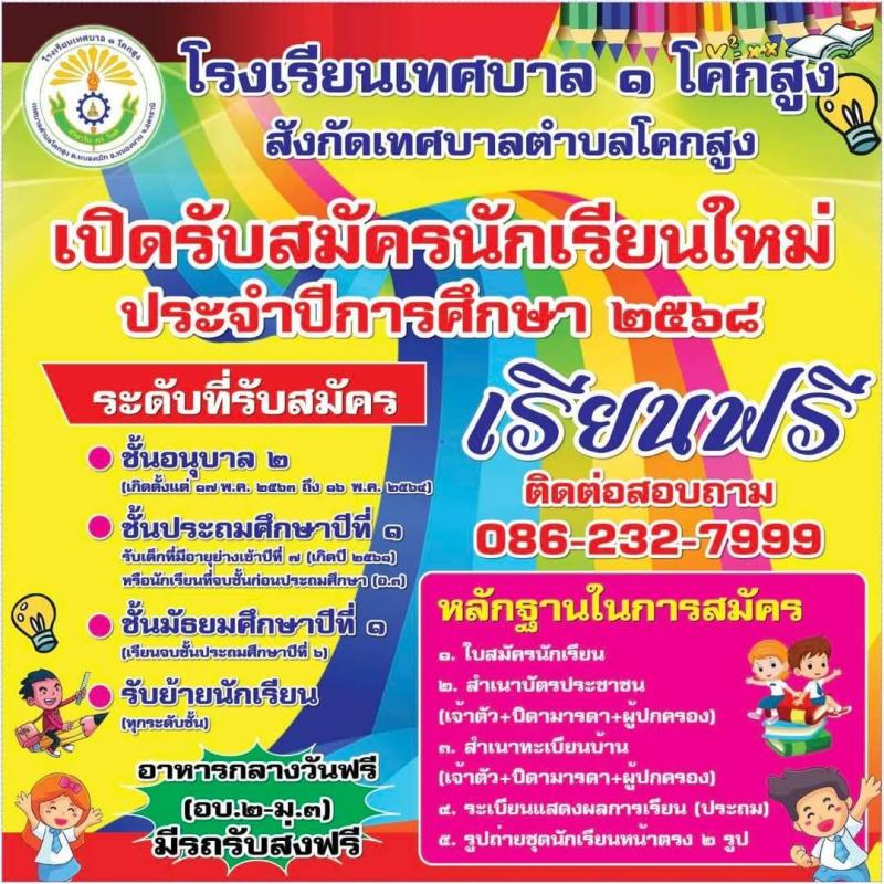 ศูนย์พัฒนาเด็กเล็กและโรงเรียนเทศบาล ๑ เปิดรับสมัครนักเรียนใหม่ ประจำปีการศึกษา 2568