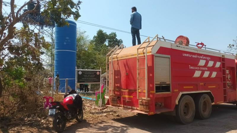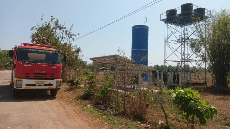 ตรวจสอบระบบประปาและส่งน้ำอุปโภคบริโภคเข้าถังประปา เพื่อช่วยเหลือการขาดแคลนน้ำ