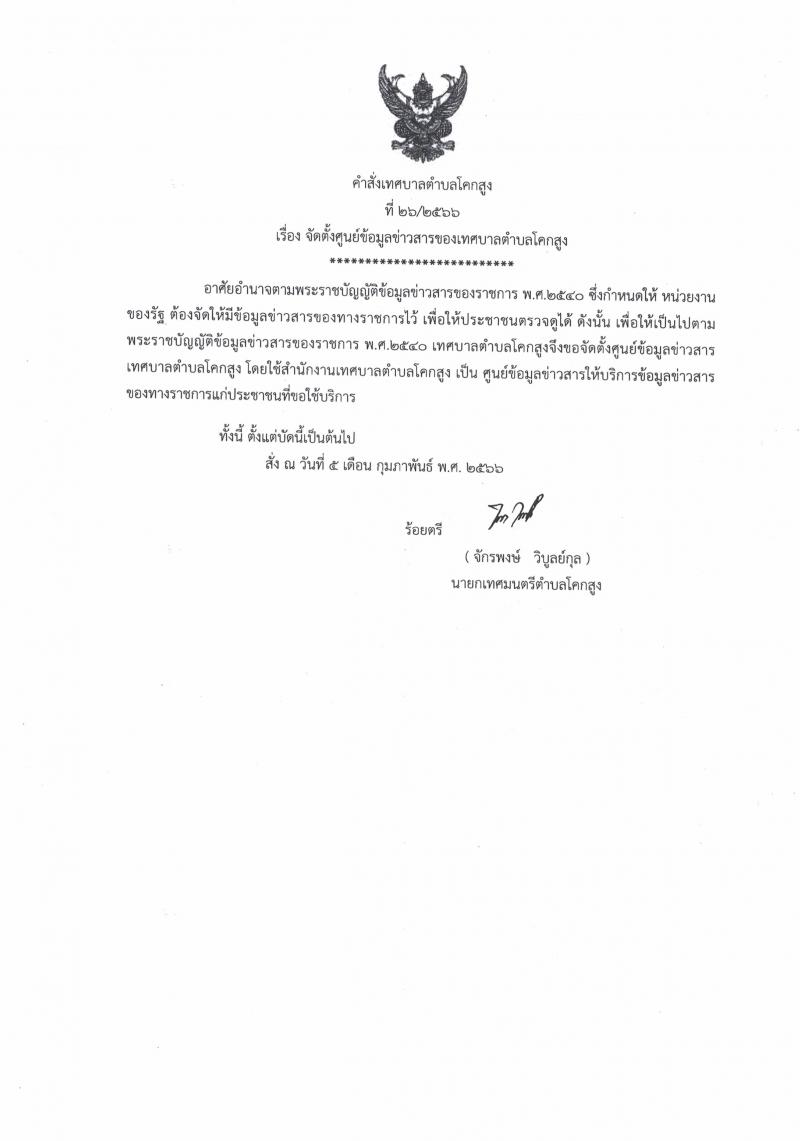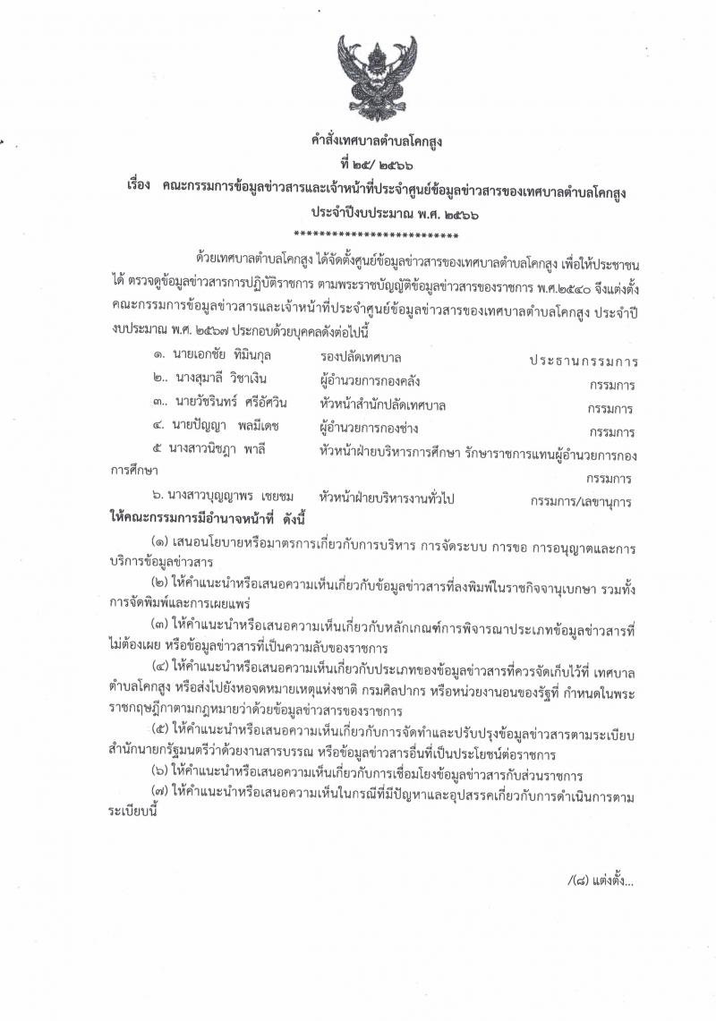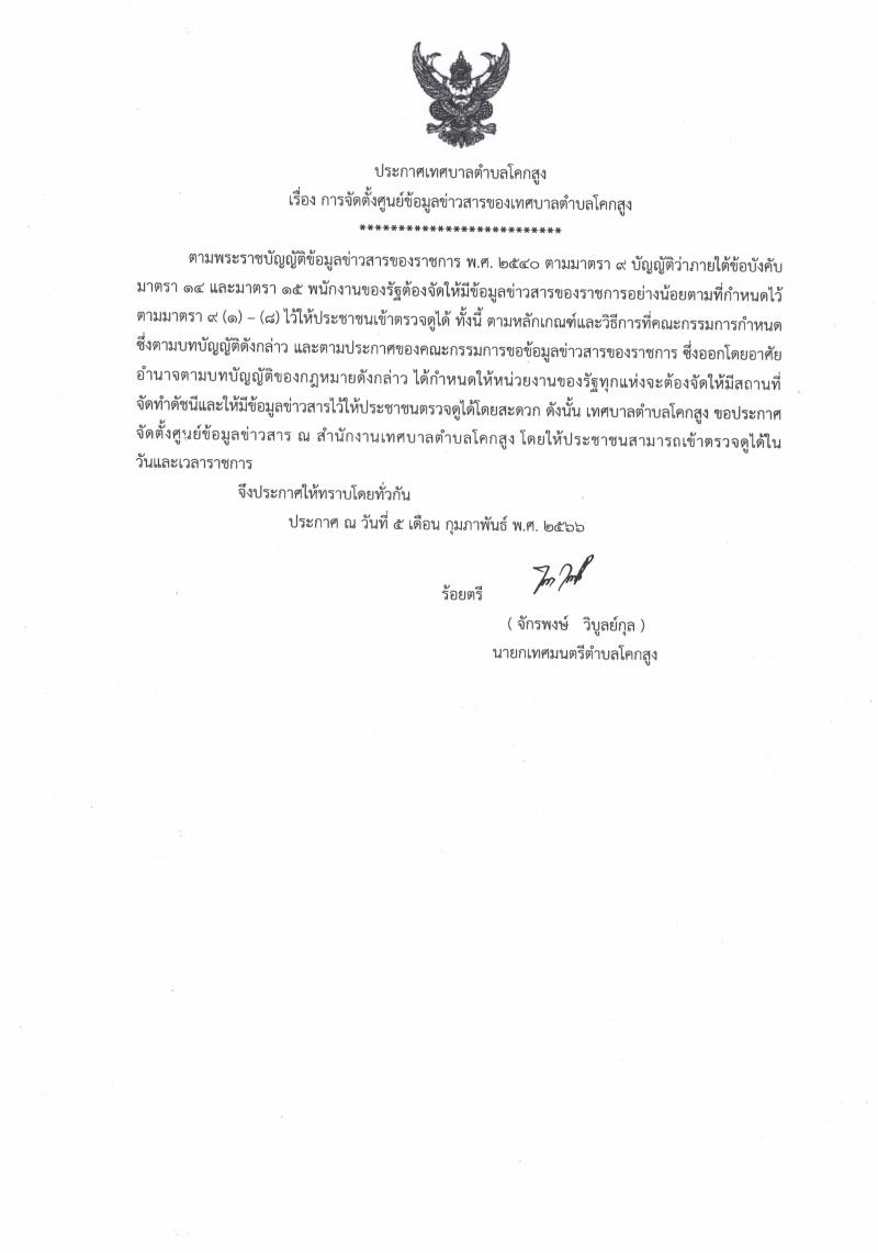: ศูนย์ข้อมูลข่าวสาร ของเทศบาลตำบลโคกสูง ปีงบประมาณ พ.ศ. 2566