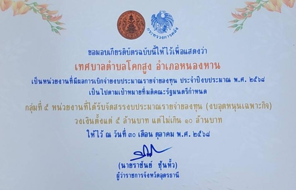 เทศบาลตำบลโคกสูงรับเกียรติบัตร [27 พฤศจิกายน 2568]