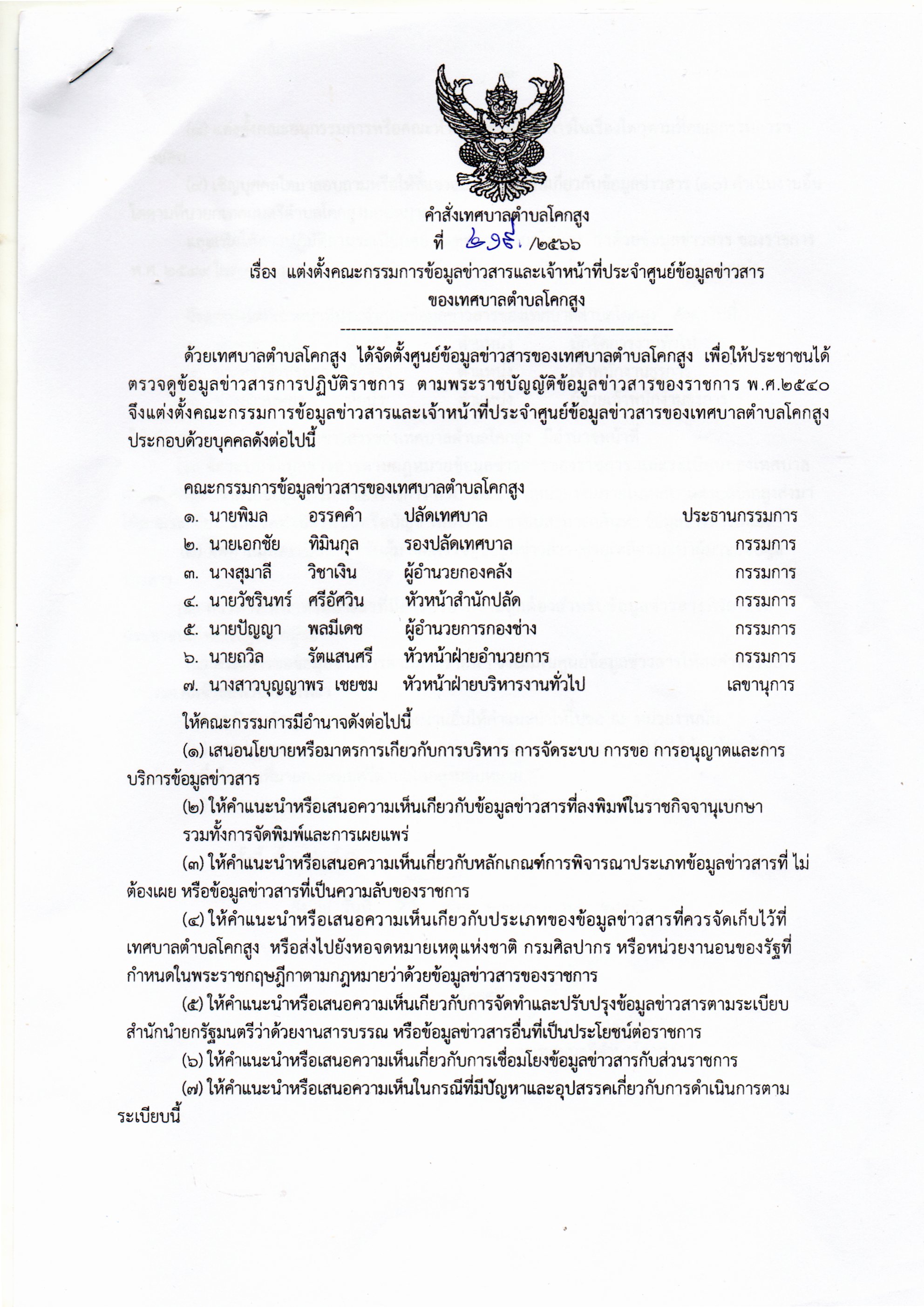 ชื่อเรื่อง : คำสั่ง เรื่อง แต่งตั้งกรรมการข้อมูลข่าวสารและเจ้าหน้าที่ประจำศูนย์ข้อมูลข่าวสาร