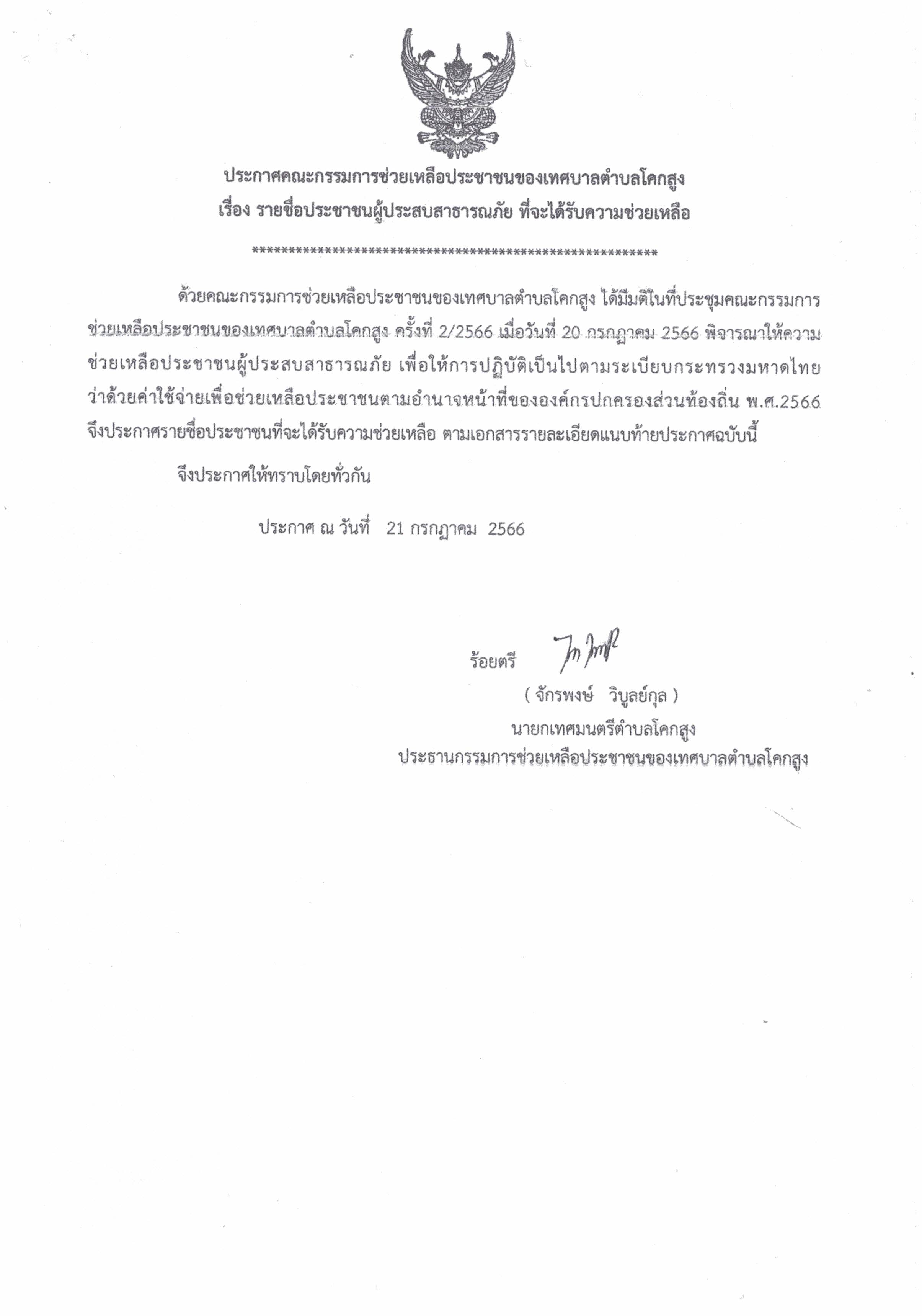 ประกาศคณะกรรมการช่วยเหลือประชาชนของเทศบาลตำบลโคกสูง