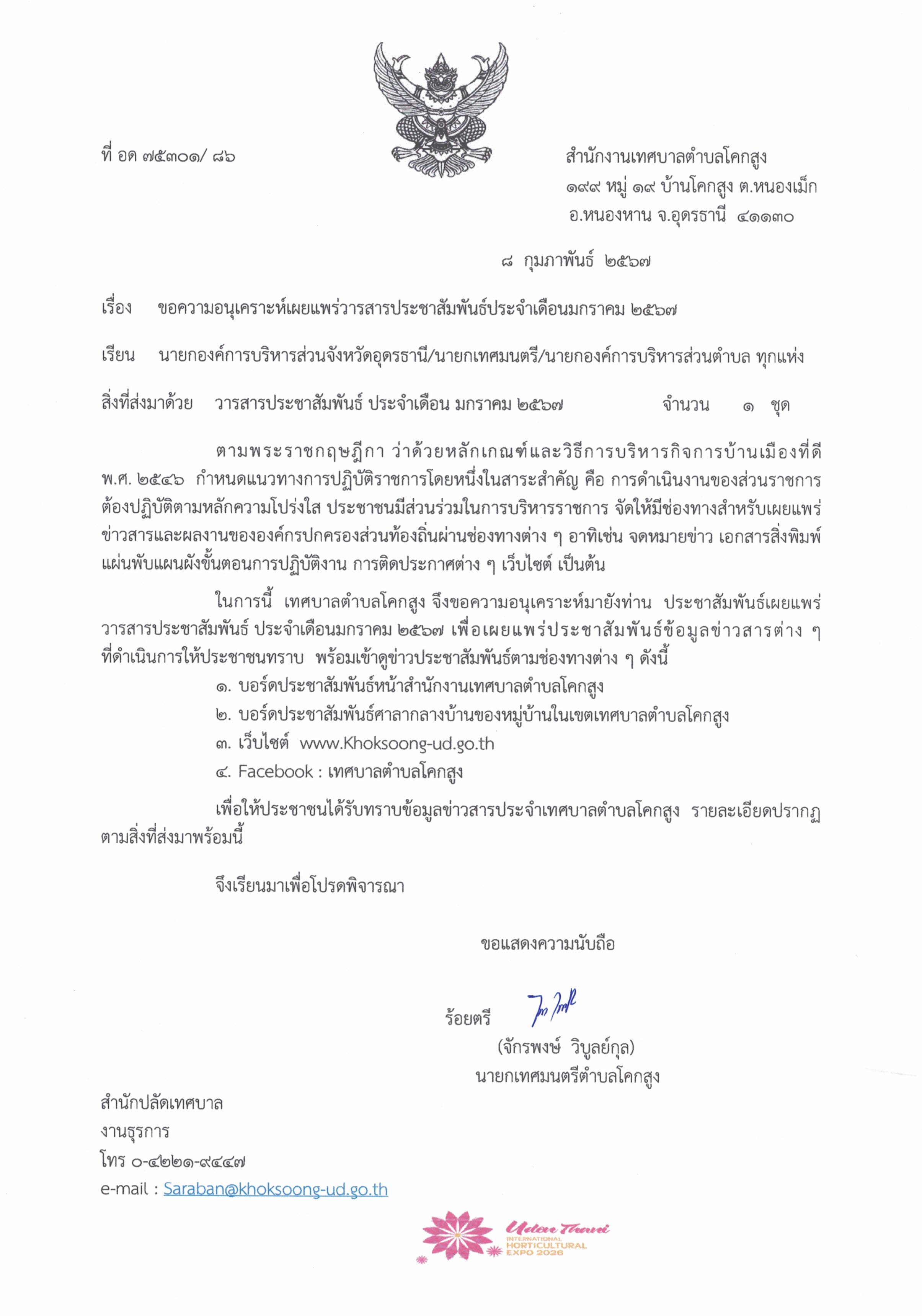 ขอความอนุเคราะห์ประชาสัมพันธ์วารสาร จดหมายข่าว ประจำเดือน มกราคม 2567