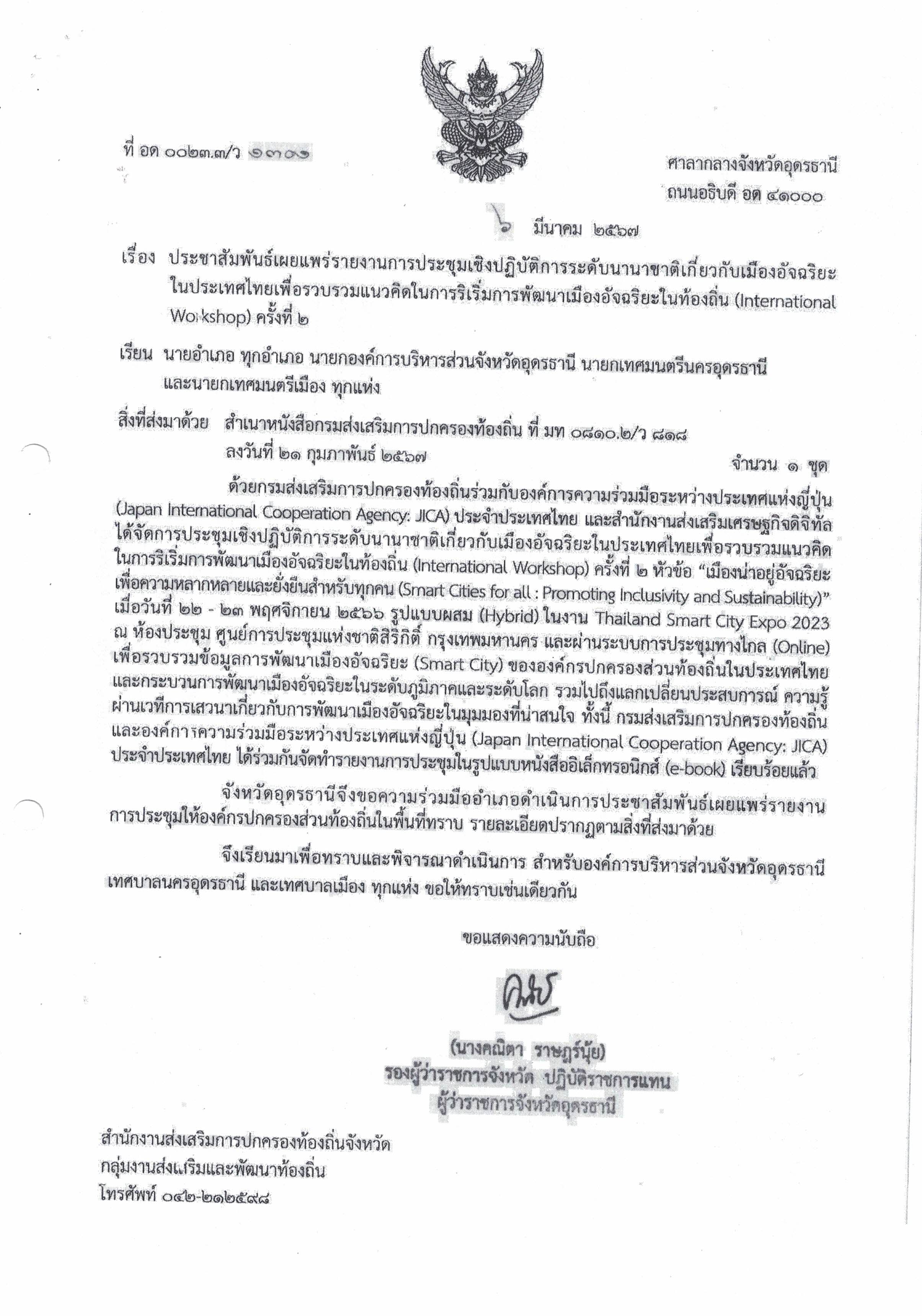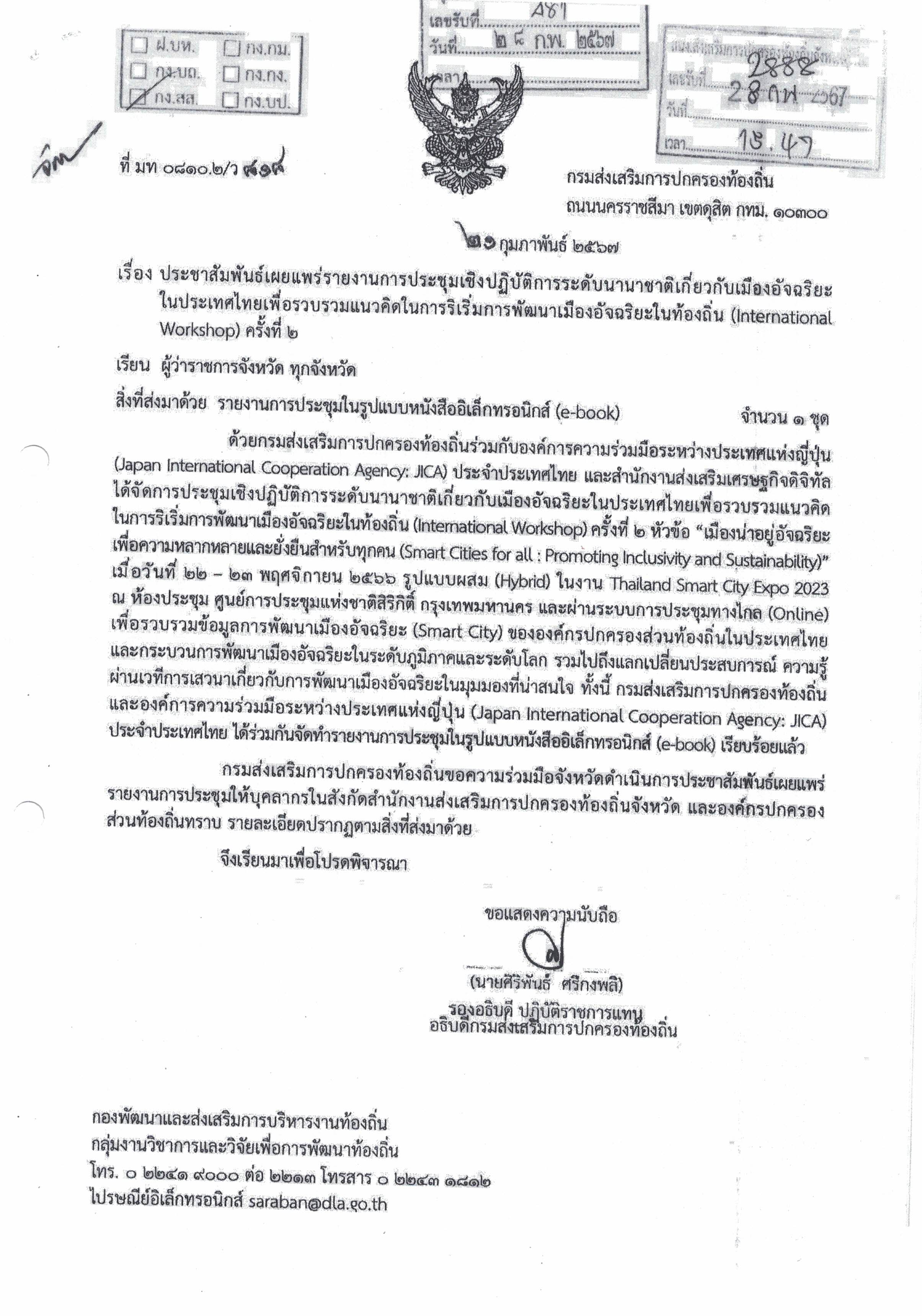 ประชาสัมพันธ์ รายงานการประชุมเชิงปฏิบัติการระดับนานาชาติเกี่ยวกับเมืองอัจฉริยะในประเทศไทยเพื่อรวบรวมแนวคิดในการเริ่มการพัฒนาเมืองอัจฉริยะในท้องถิ่น (I
