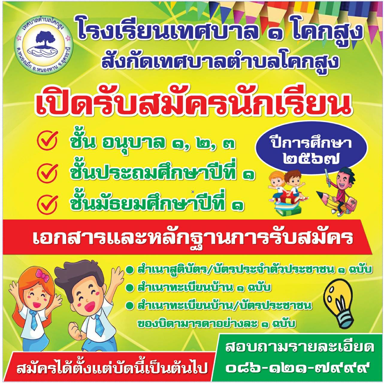 ประชาสัมพันธ์การรับสมัครนักเรียน โรงเรียนเทศบาล 1 โคกสูง
