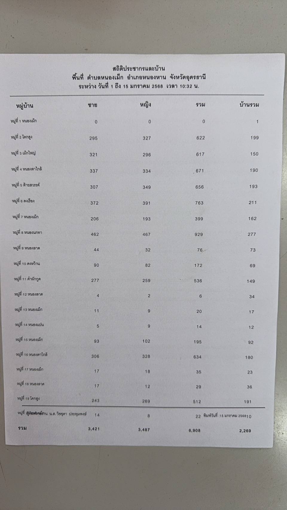 ข้อมูลประชากรและจำนวนครัวเรือน ในเขตเทศบาลตำบลโคกสูง ณ.วันที่ 15 มกราคม 2568