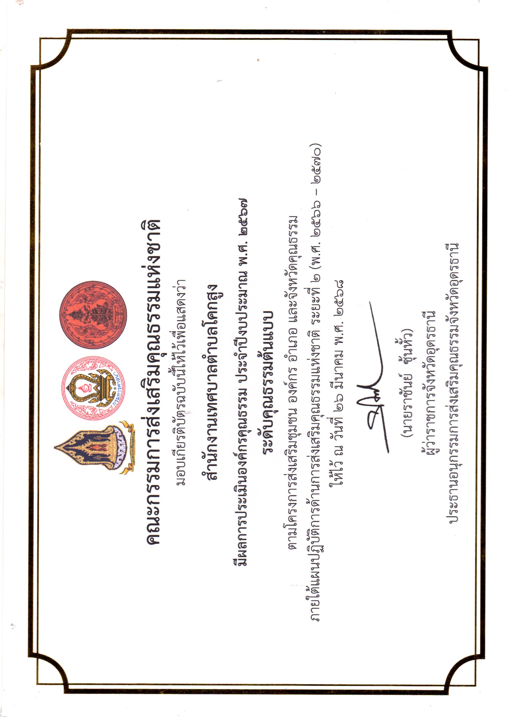 ระดับคุณธรรมต้นแบบ ตามโครงการส่งเสริมชุมชน องค์กร อำเภอ และจังหวัดคุณธรรม ภายใต้แผนปฏิบัติการส่งเสริมคุณธรรมแห่งชาติ ระยะที่ ๒ (พ.ศ.๒๕๖๖-๒๕๖๗)
