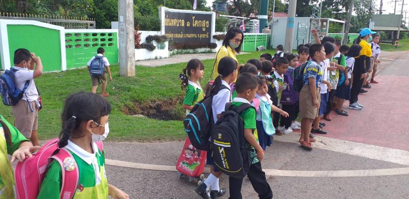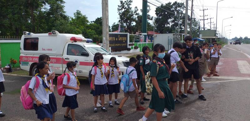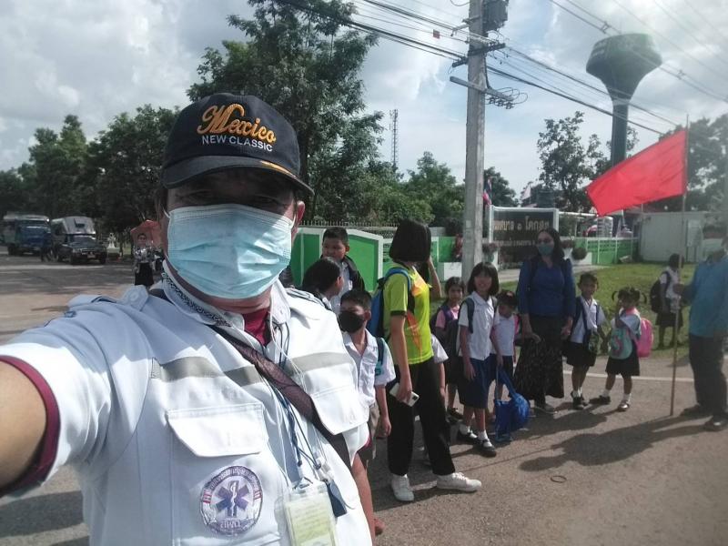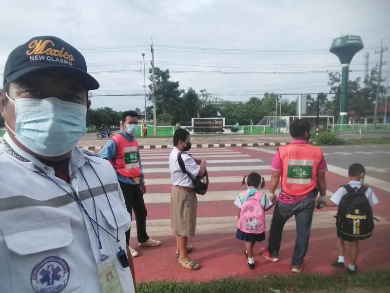 : งานป้องกันและบรรเทาสาธารณภัย สำนักปลัดเทศบาล ควบคุมดูแลเด็กนักเรียนข้ามถนน บริเวณหน้าโรงเรียนเทศบาล ๑ โคกสูง (ถนนอุดร-สกล) เพื่อป้องกันและอำนวยความสะดวก ความปลอดภัย