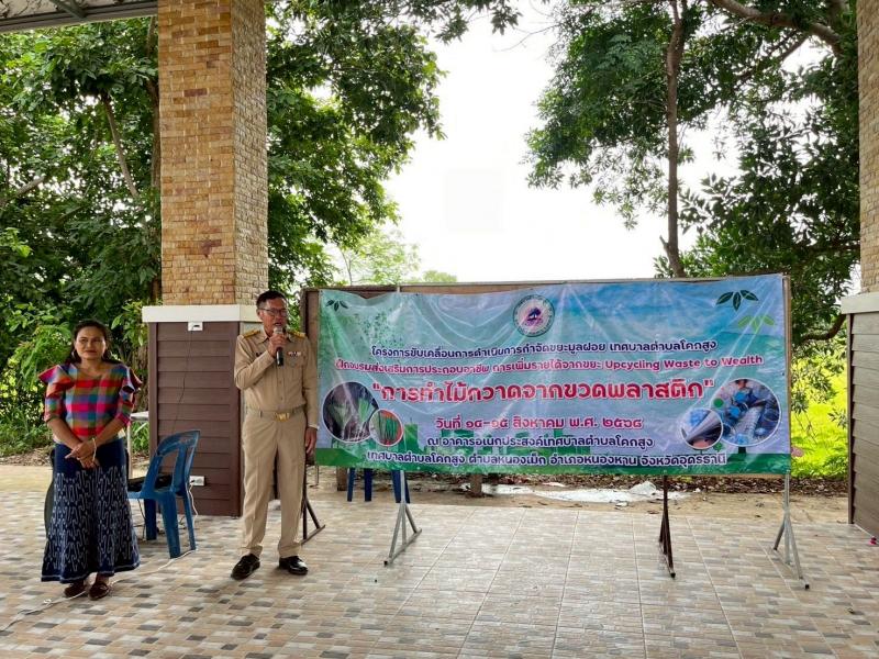 รายละเอียด : วันที่ 14-15 สิงหาคม 2568 เทศบาลตำบลโคกสูง นำโดยร้อยตรีจักรพงษ์ วิบูลย์กุล นายกเทศมนตรี มอบหมายให้ นายสุพจน์ เบญจวนิช รองนายกเทศมนตรี และนายมีชัย พรหมโคตร รองนากเทศมนตรี พร้อมด้วยคณะผู้บริหาร ประธานสภา สมาชิกสภาเทศบาล พนักงานเทศบาล จัดโครงการขับเคลื่อนการดำเนินการกำจัดขยะมูลฝอย ฝึกอบรมส่งเสริมการประกอบอาชีพ การเพิ่มรายได้จากขยะ Upcycling Waste to Wealth "การทำไม้กวาดจากขวดพลาสติก" โดยมีสมาชิกกองทุนธนาคารขยะรีไซเคิ้ล เทศบาลตำบลโคกสูง จำนวน 50 คน และสมาชิกธนาคารขยะของนักเรียนโรงเรียนเทศบาล ๑ โคกสูง ร่วมกิ้จกรรม จำนวน 40 คน