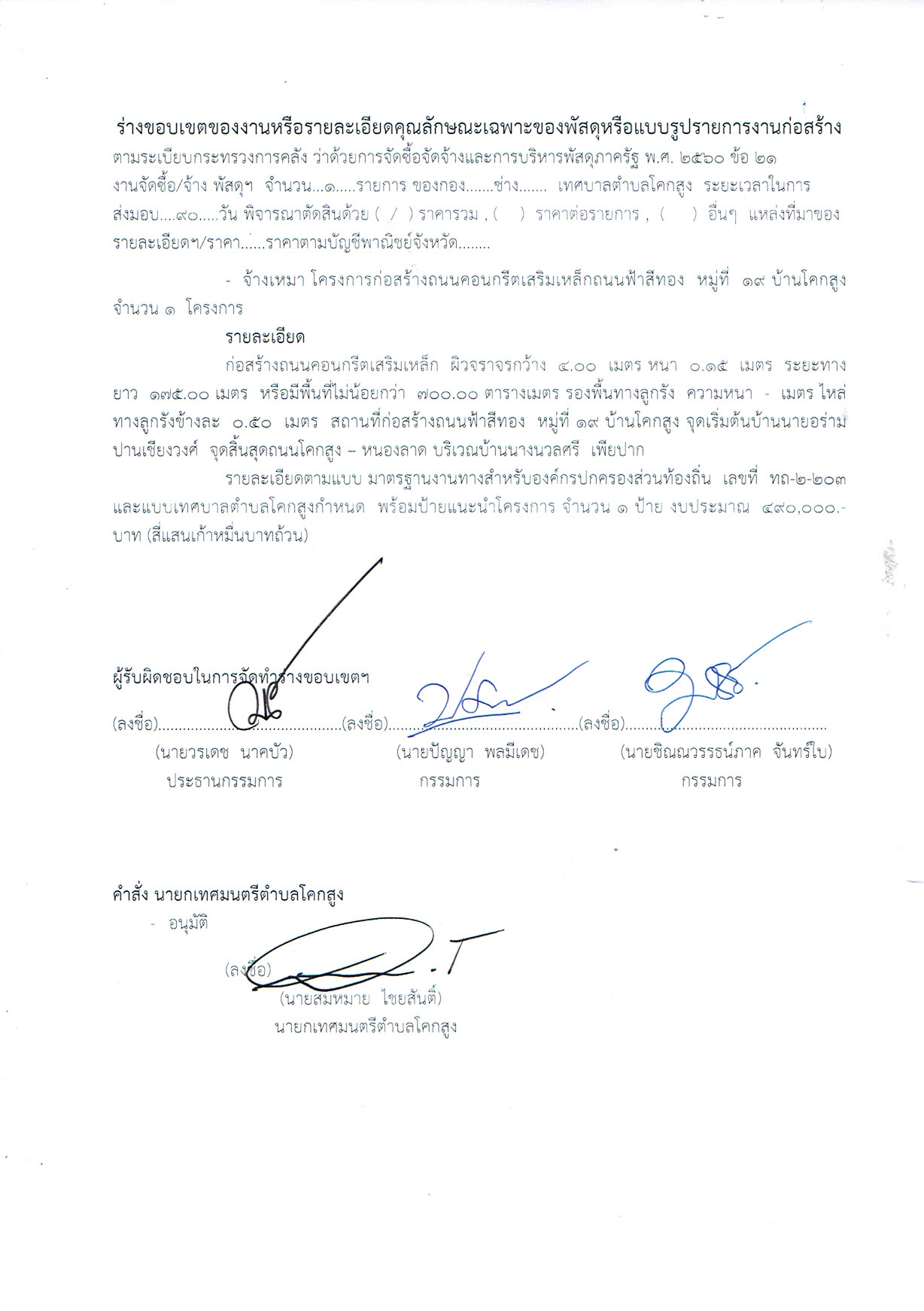 ชื่อเรื่อง : ประกาศเทศบาลตำบลโคกสูง เรื่อง การเปิดเผยรายละเอียดค่าใช้จ่ายเกี่ยวกับการจัดซื้อจัดจ้าง ราคากลางและการคำนวณราคากลางงานก่อสร้าง โครงการก่อสร้างถนนคอนกรี